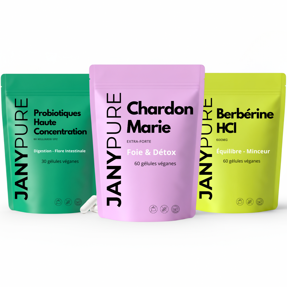Le pack le plus complet du marché. 60 Milliards de probiotiques (concentration exceptionnelle), Berbérine 600mg (dosage optimal) et Chardon-Marie 1000mg (80% de silymarine).